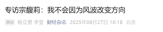 前两天现身宏盛集团后,如今,宗馥莉又接受媒体采访,首度对近期风波发声!