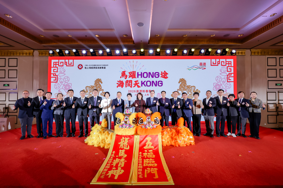香港特区政府驻上海经济贸易办事处日前在上海举办“马跃HONG途 海阔天KONG” 2026沪港新春聚会,与超过200位来自华东地区的政府代表、企业及在沪港人团体代表欢聚一堂,共叙情谊,共话未来。
